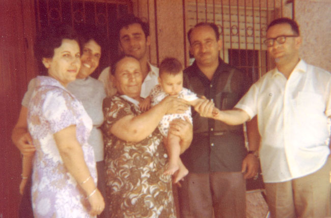 בגיל חודש עם הסבתא והדודים
